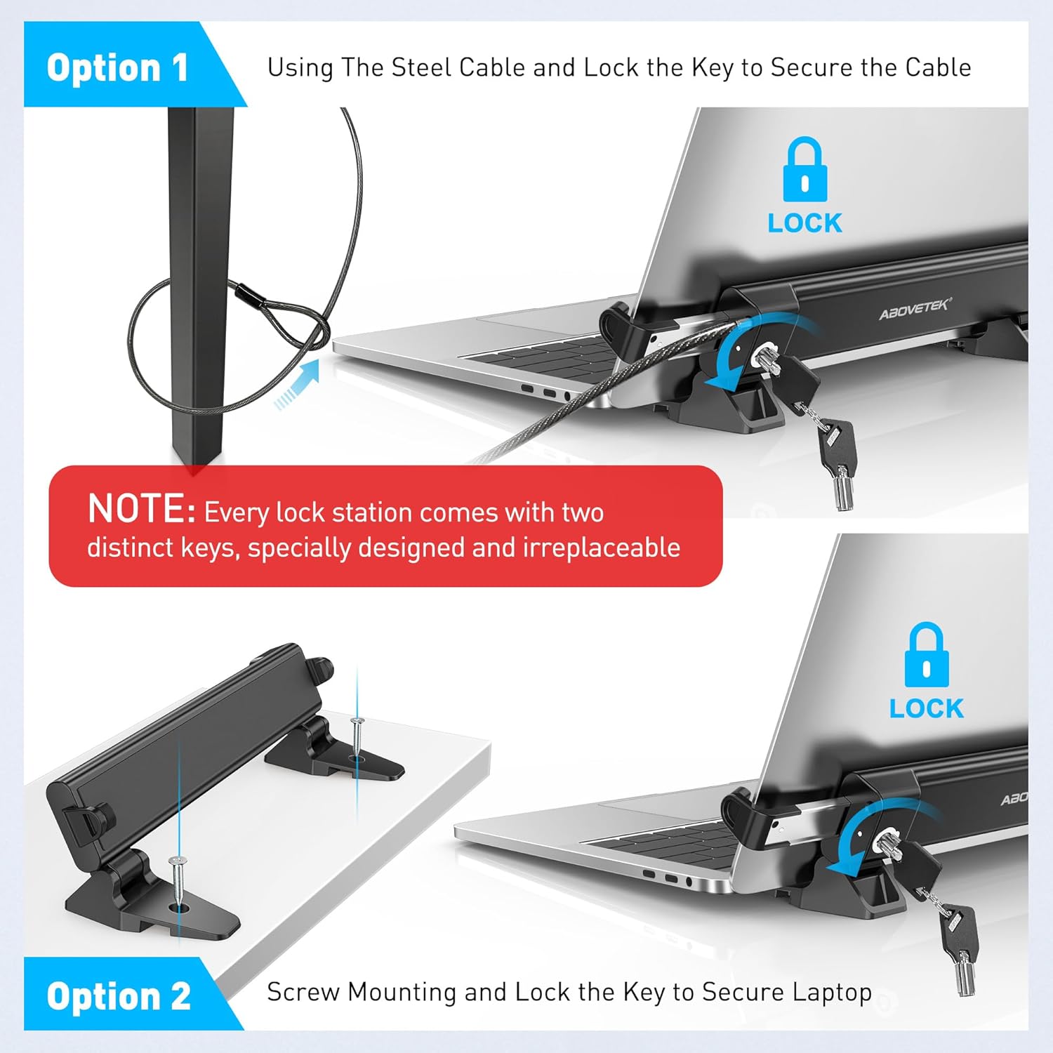 AboveTEK iPad Lock Security Cable w/Adhesive Plates, 6Ft Keyless 4 Digit Combination Tablet Lock Kit, Anti-Theft Hardware Locking Cable for iPhone Cell Phone MacBook Laptop in Showroom Retail Store AboveTEK MacBook & Surface Laptop Locking Station with Combo Lock Cable, Anti Theft Folding Security Laptop Desk Mount, Adjustable & Portable, Fits 12"-16" Laptops/Notebooks, Black